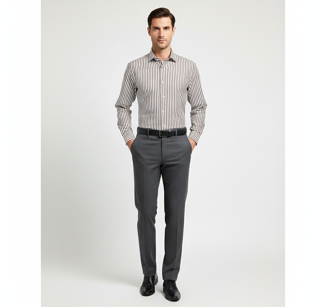 CAMICIA RIGATA MARRONE